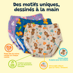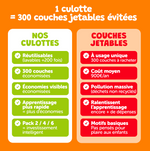 Une seule de nos culottes réutilisables pour enfant peut remplacer jusqu’à 300 produits jetables. Résultat : moins d’achats répétés, moins de dépenses au fil du temps et un vrai soulagement pour le budget des parents, tout en faisant un geste pour la planète. 🌱