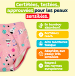 Conçues avec des matériaux de haute qualité, nos culottes réutilisables sont approuvées pour les peaux sensibles. Douces, respirantes et sans substances irritantes, elles offrent un confort optimal au quotidien, même pour les peaux les plus délicates.